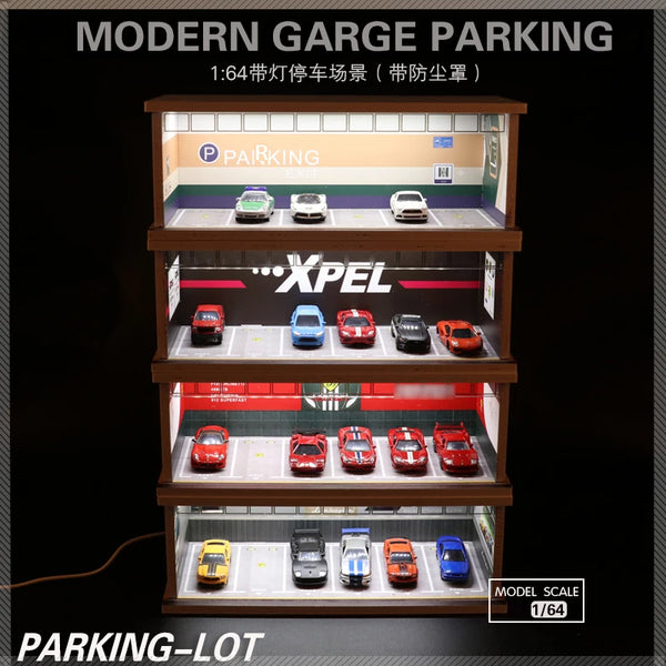 This parking garage model with acrylic dust cover protects paint and decals. Built-in lights highlight miniature details so each car looks museum-ready while staying clean and untouched between viewings.